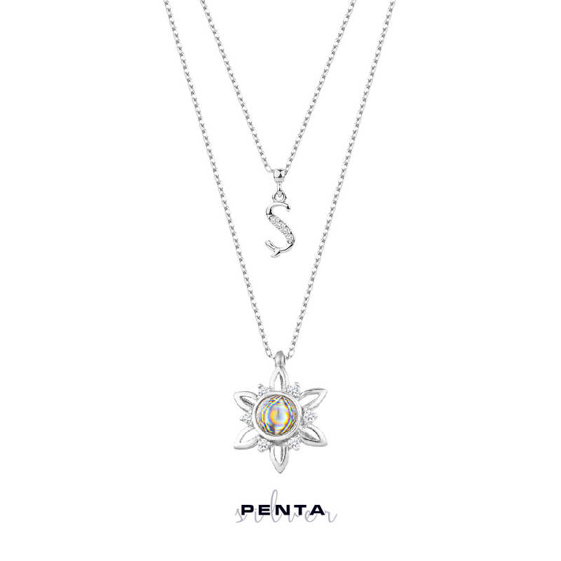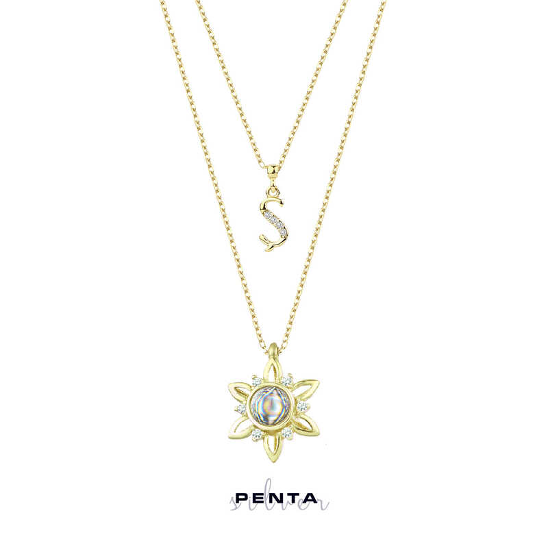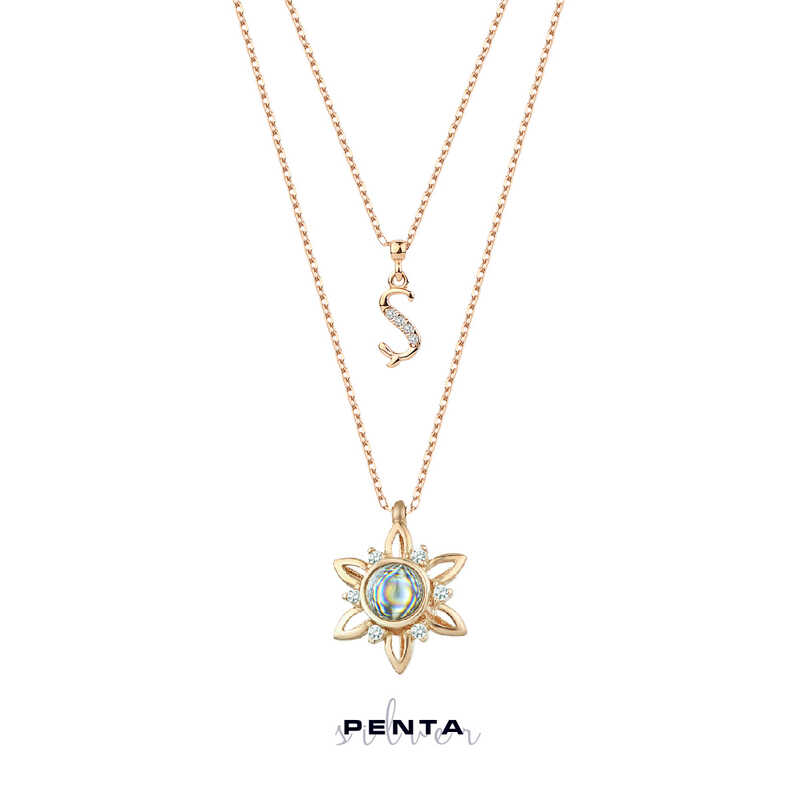 100 Dilde Seni Seviyorum Harfli Çiçekli Gümüş Kolye