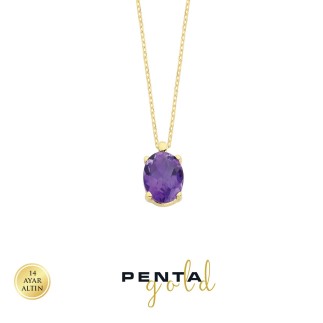 14 Ayar Altın Ametist Doğal Taşlı Oval Kolye