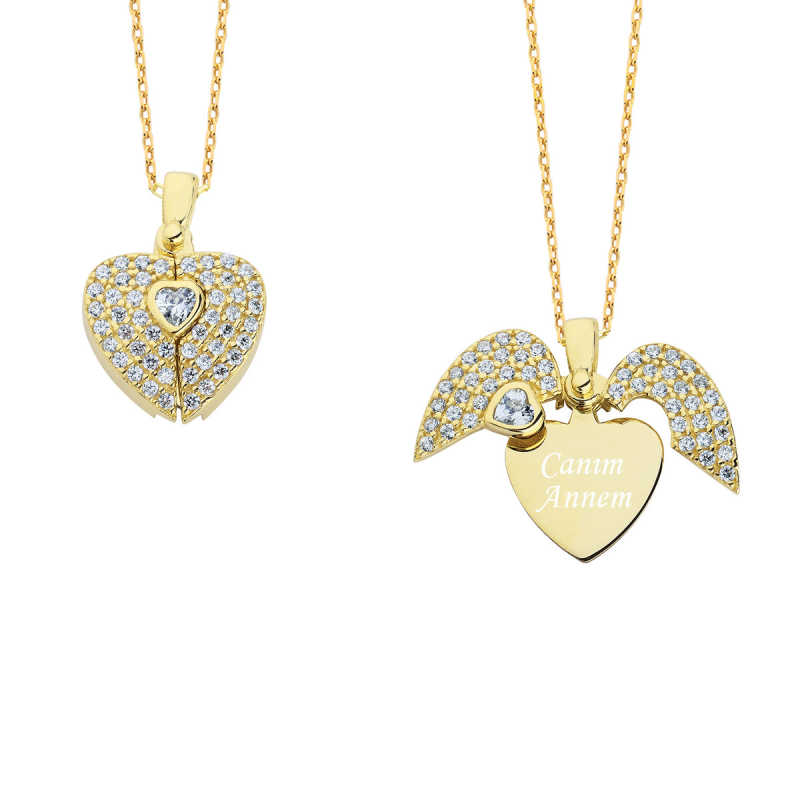 14 Ayar Altın İsimli Kalpli Swarovski Kolye