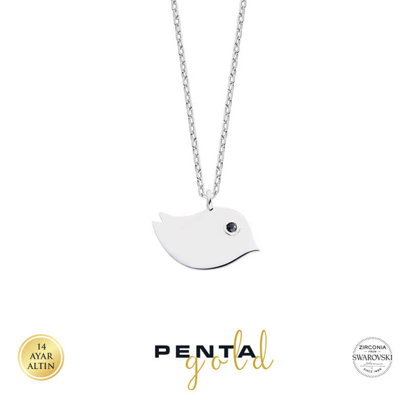 14 Ayar Altın Kuşlu Swarovski Taşlı Kolye