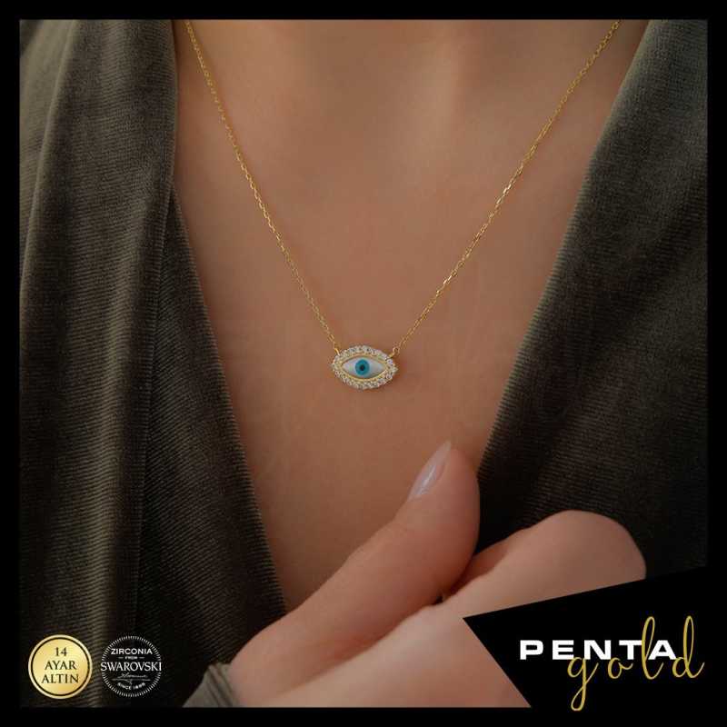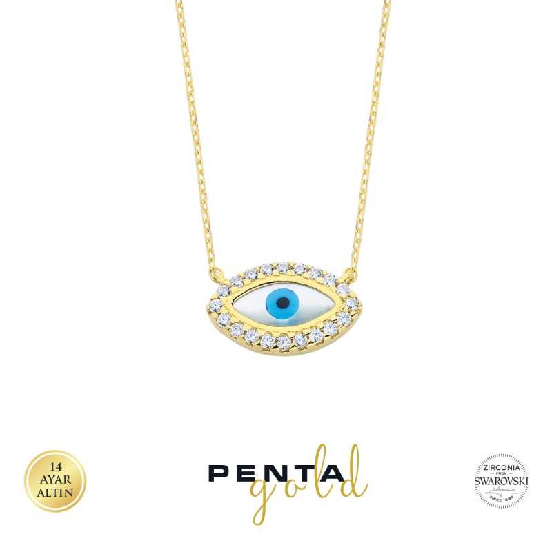 14 Ayar Altın Nazar Boncuklu Göz Swarovski Kolye