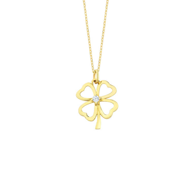 14 Ayar Altın Swarovski Dört Yaprak Yonca Kolye