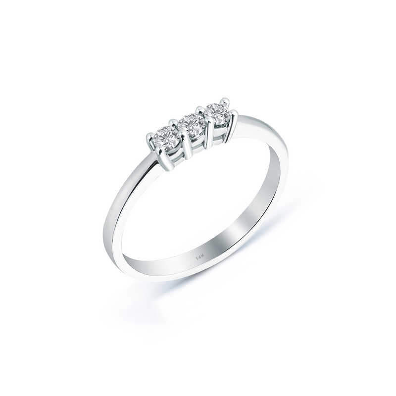 14 Ayar Altın Üçtaş Yüzük 0,20 ct. Swarovski Taşlı