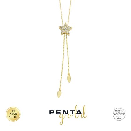 14 Ayar Altın Yıldız Çift Zincir Swarovski Kolye