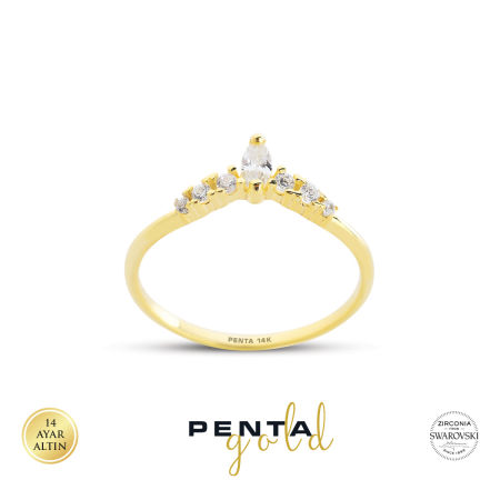 14 Ayar Swarovski Taşlı Markiz Altın Yüzük