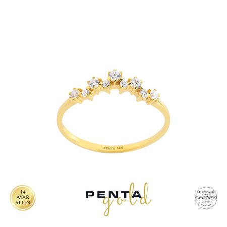 14 Ayar Swarovski Taşlı Serpme Altın Yüzük
