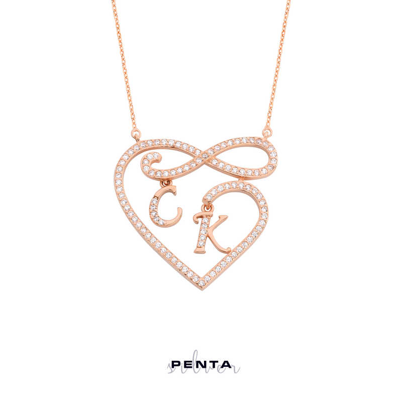 Harfli Kalpli Sonsuzluk Gümüş Kolye