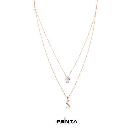 Kalpli Taşlı Çift Zincir Harfli Gümüş Kolye