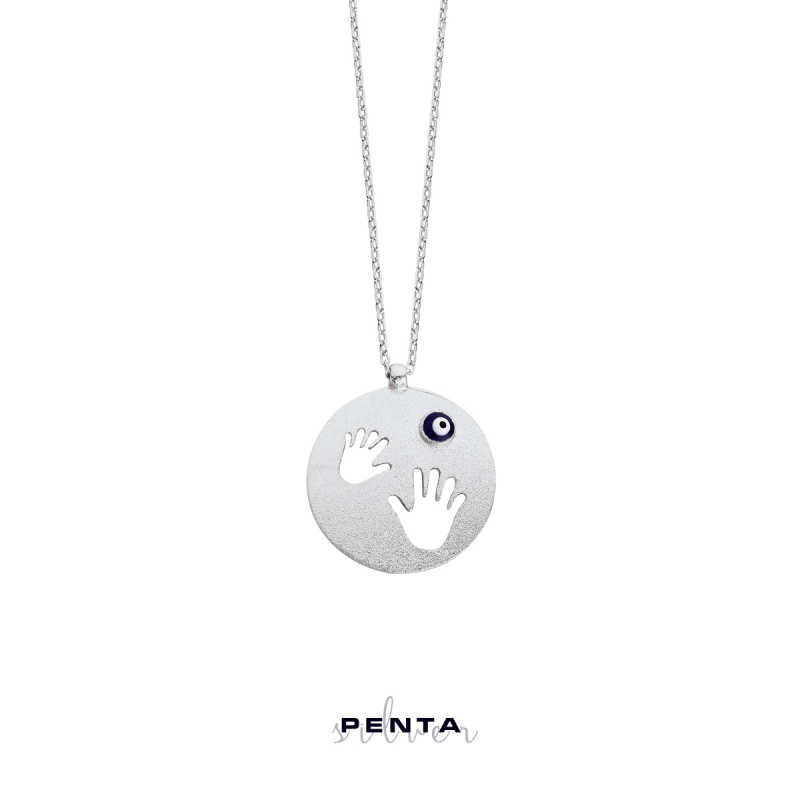 Nazar Boncuklu El İzi Gümüş Kolye