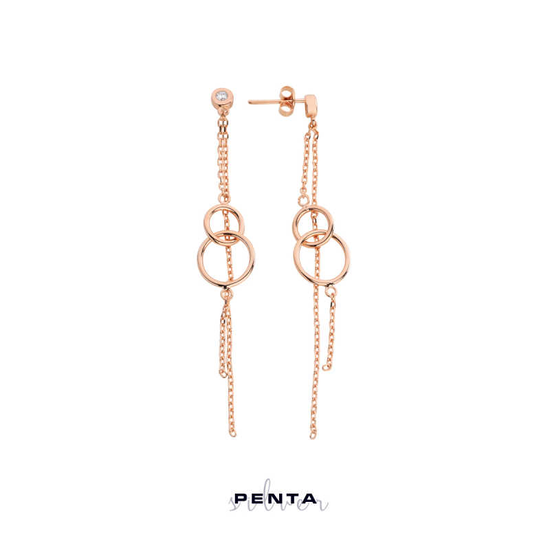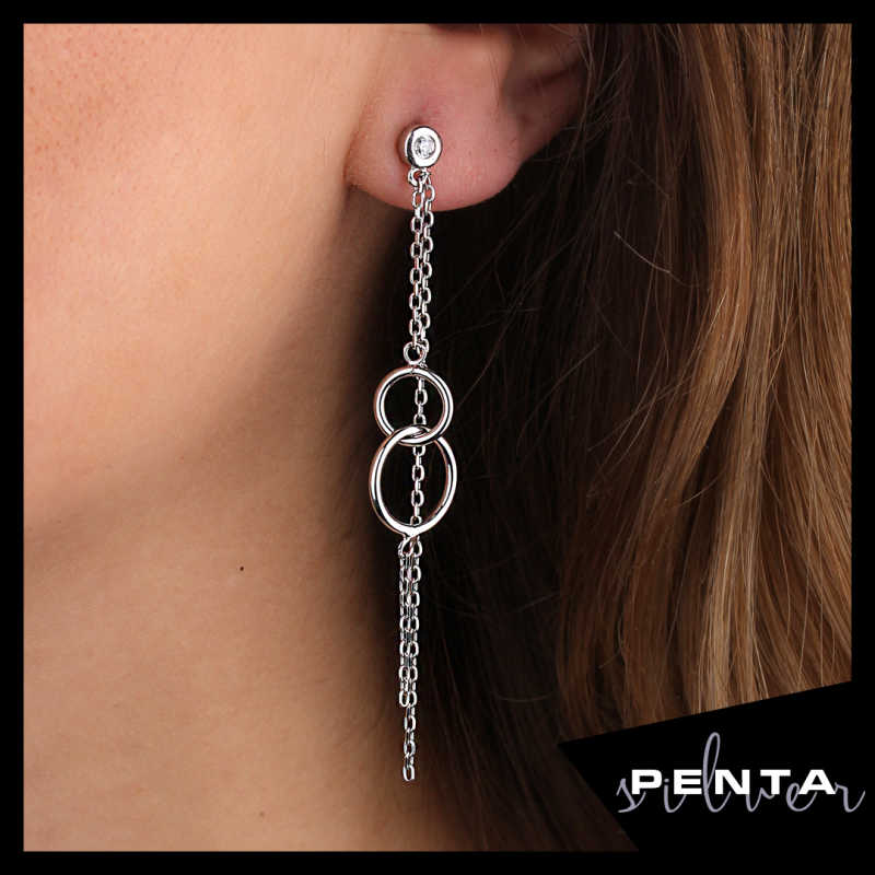 Sallantılı Çift Halka Gümüş Küpe