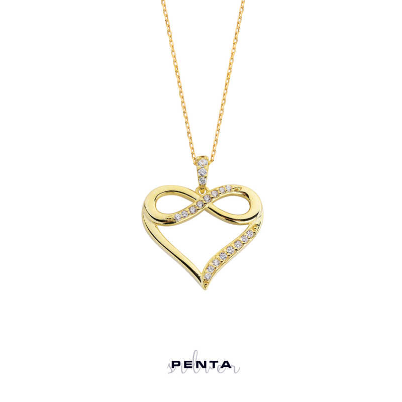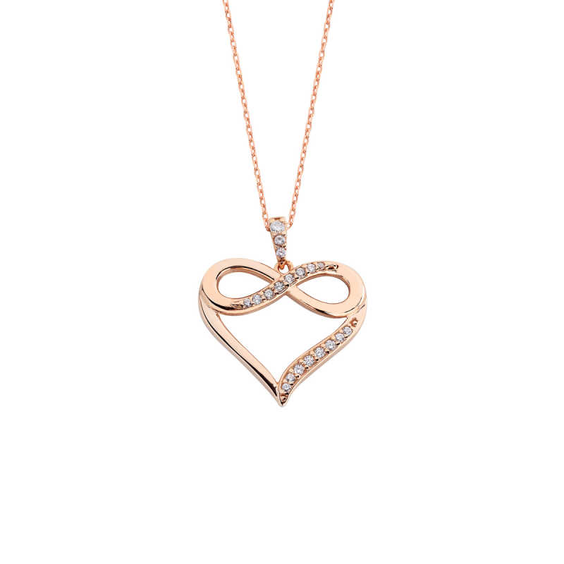 Sonsuzluk Motifli Zirkon Taşlı Kalpli Gümüş Kolye
