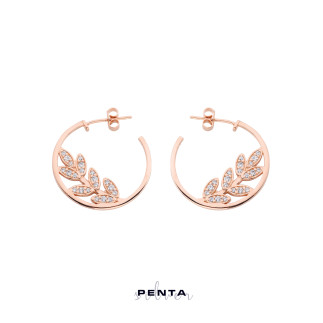 Yaprak Motifli Halka Gümüş Küpe