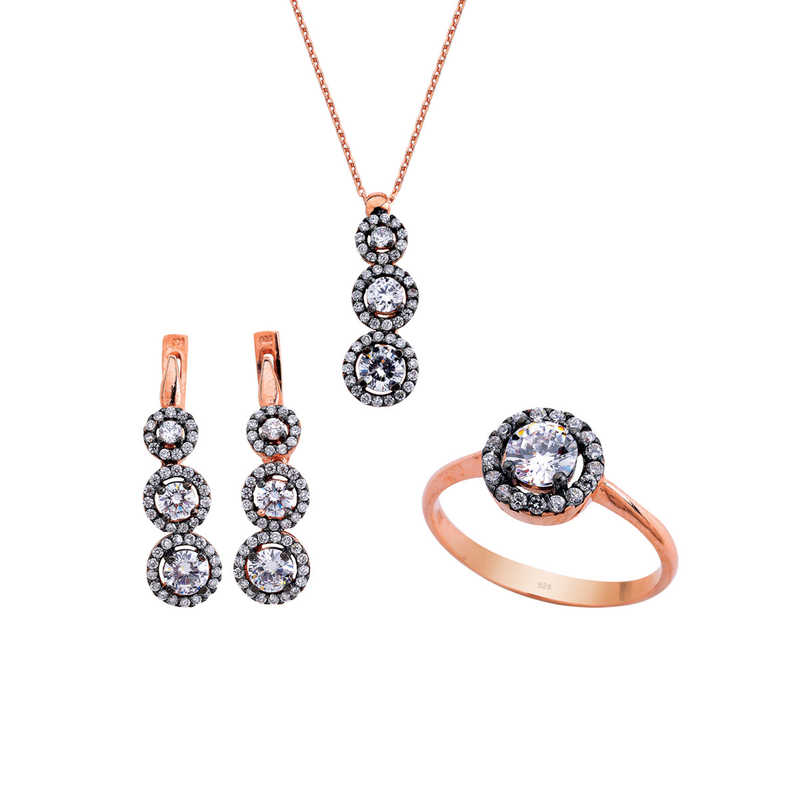 Yuvarlak Tria Anturaj Gümüş Takı Seti
